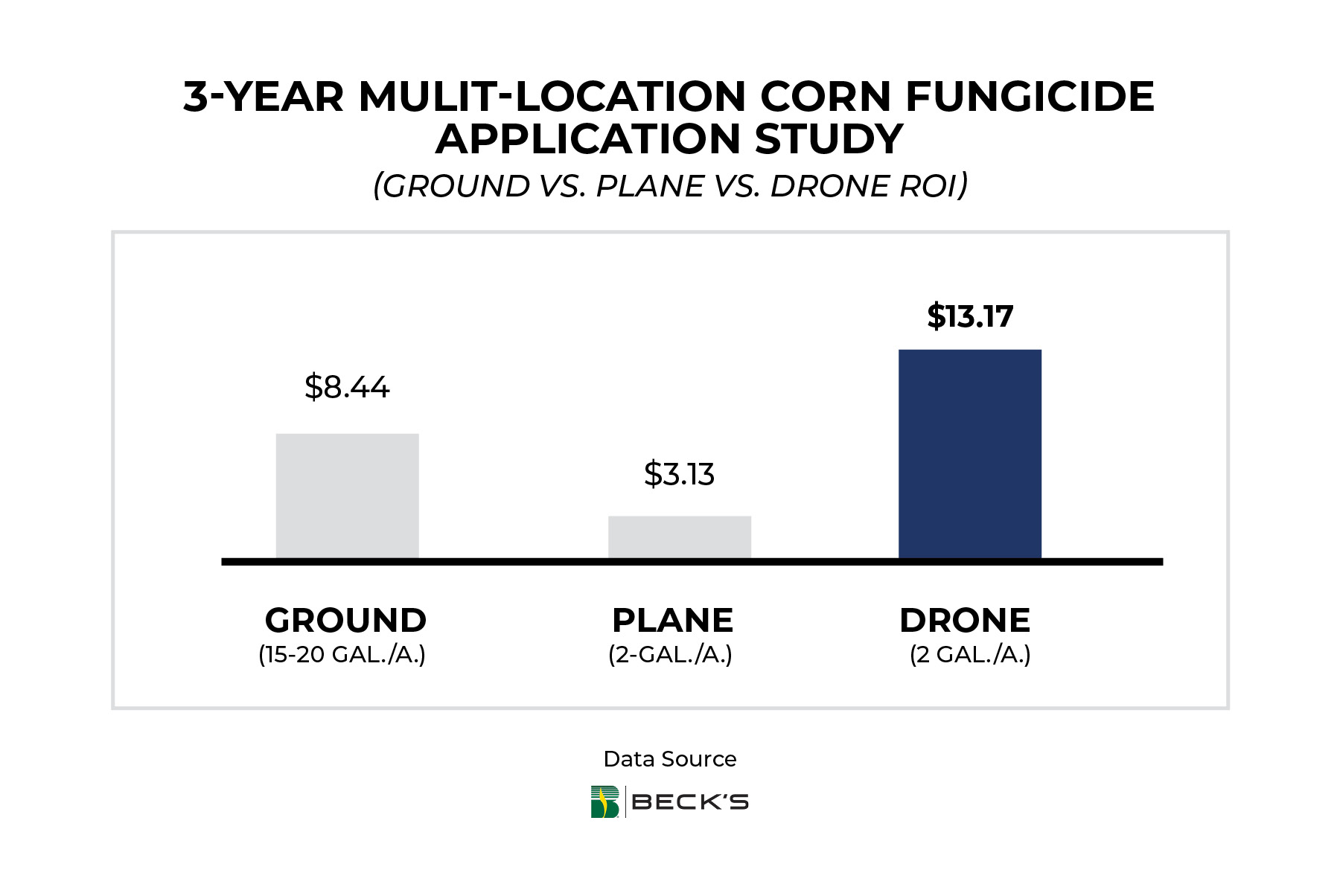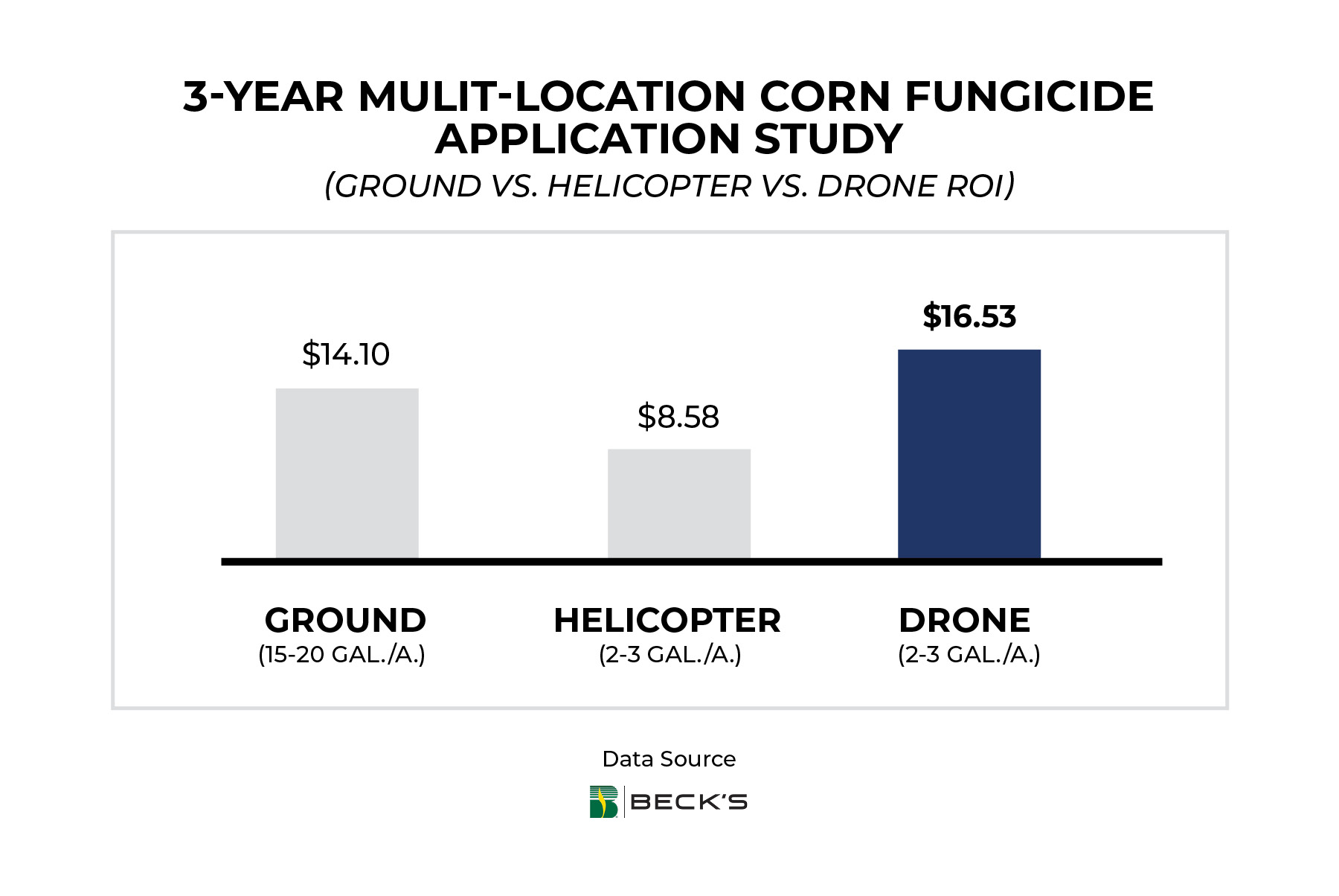 Learn MoreWe’ve continuously talked about the positive impact that drones have on farm ROI, but don’t just take our word for it. The PFR data studies completed by Beck’s Hybrids below shows a significant advantage for drones vs. other application methods – flying high above the rest.